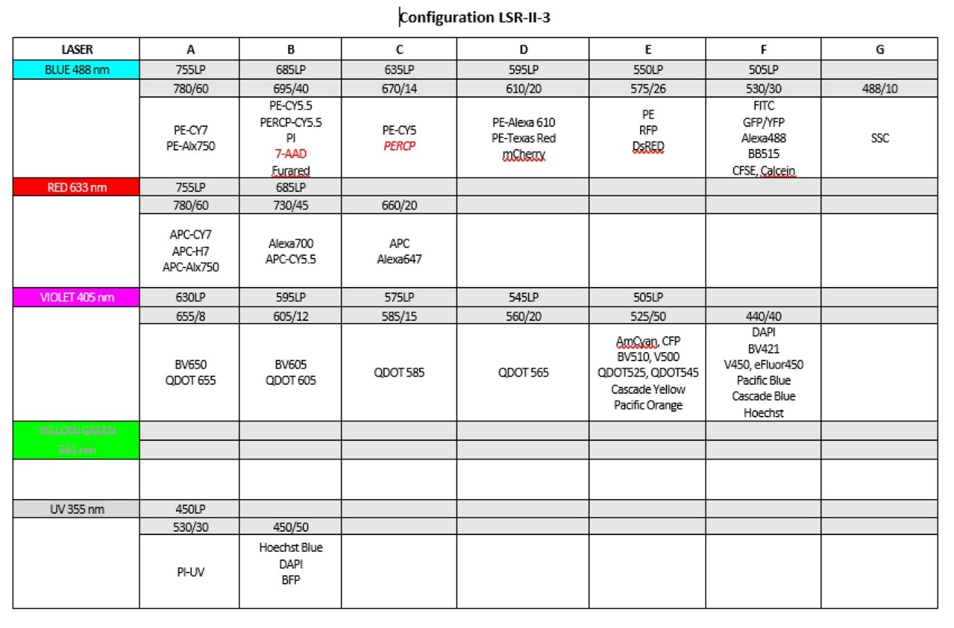 The FCF operates four standard conventional flow cytometers (up to 8 fluorochromes) and seven advanced conventional flow cytometers (up to 12 fluorochromes), including research-grade instruments located in biosafety level II and III laboratories (ML-II and ML-III) for analyzing biohazardous materials.